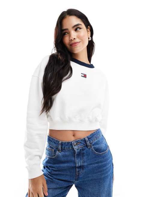 Tommy Jeans – Vit sweatshirt i kort design med kantrand
