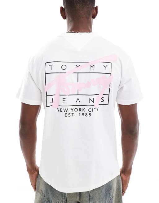 Tommy Jeans – Vit t-shirt med graffititryck baktill och logga