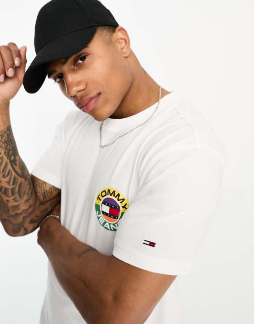 Tommy Jeans – Vit t-shirt med klassisk flagglogga