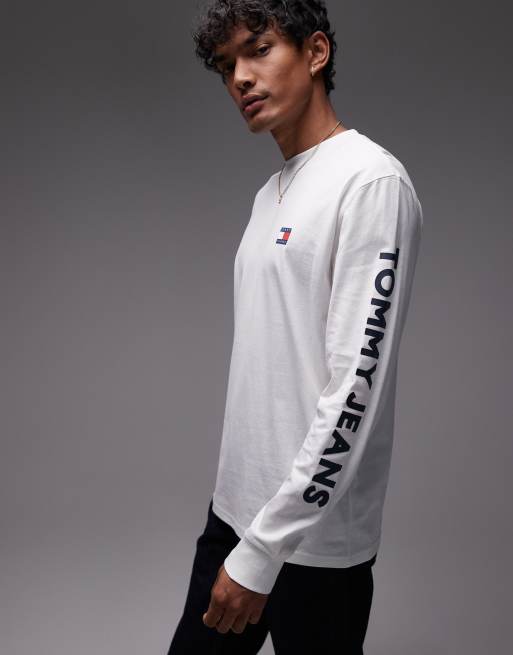 Tommy Jeans – Vit t-shirt med logga och långa ärmar