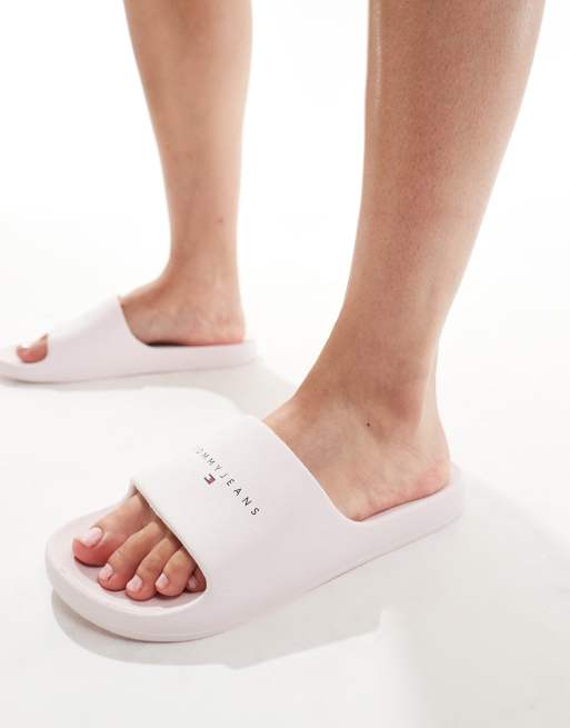 Tommy Jeans – Vita badtofflor i PU med mönster