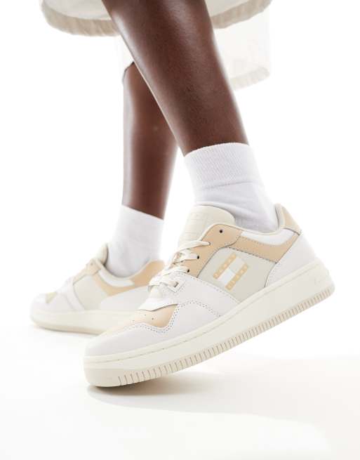 Tommy Jeans – Vita och beiga basketsneakers i retrostil