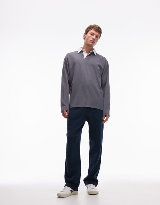 Topman – Blå, tvättade mjukisbyxor med raka ben