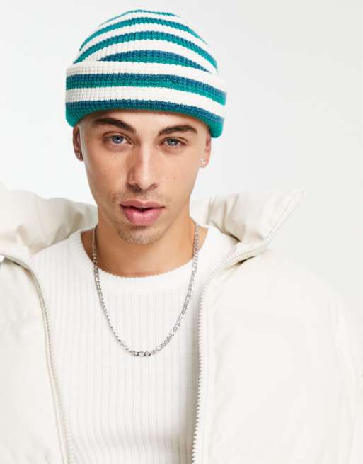 Topman – Blågrön och grön randig mössa i polyestermix - MGREEN