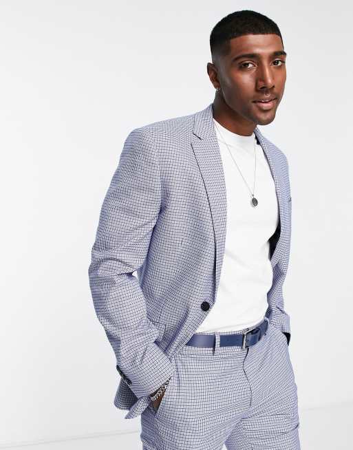 Topman – Blårutig enkelknäppt kavaj med skinny passform, del av kostym