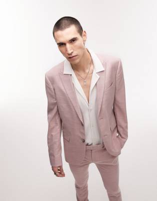 Topman – Bröllop – Rosa, supersmal, dubbelknäppt kavaj, del av kostym