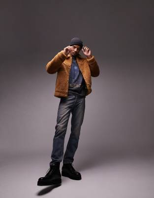 Topman – Brun fuskpälsjacka i cowboystil