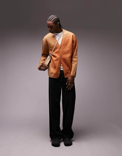 Topman – Brun stickad kofta med abstrakt mönster