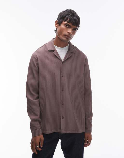 Topman – Chokladbrun, grov skjorta med långa ärmar och plissering