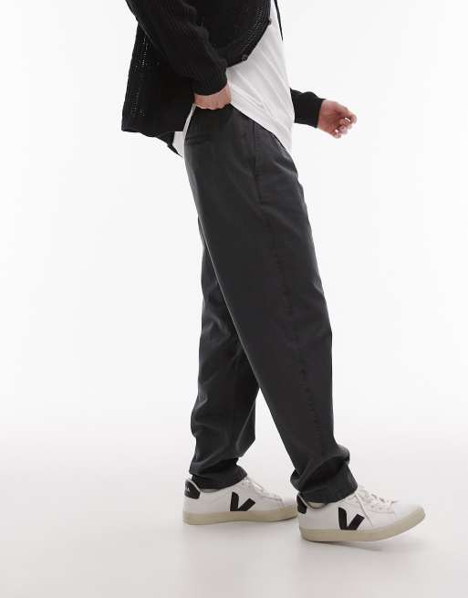 Topman – Essential – Blekt mörkgrå byxor