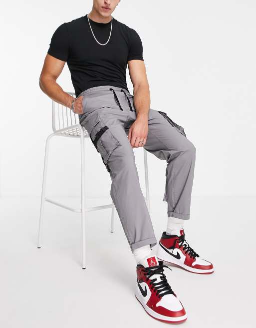 Topman – Grå avslappnade träningsbyxor i cargostil