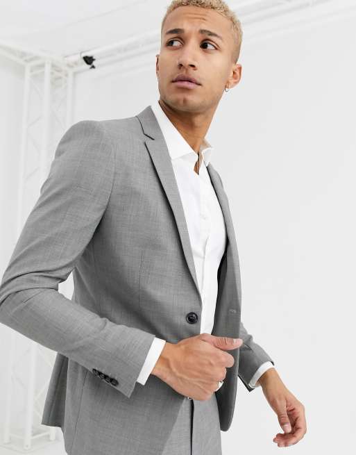 Topman – Grå enkelknäppt kavaj med extra smal passform