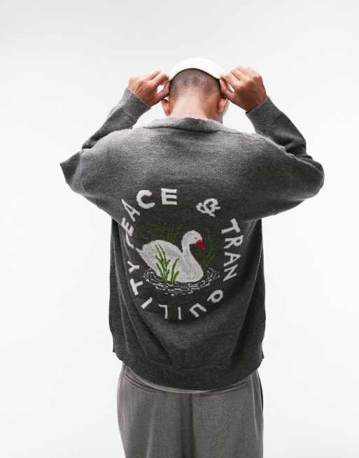 Topman – Grå kofta i oversize modell med svan-tryck baktill