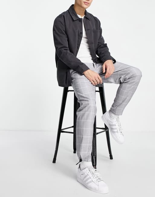 Topman – Grå rutiga byxor i avslappnad passform med skärp