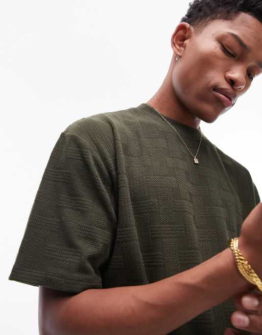 Topman – Kakifärgad t-shirt i oversize med rutig textur