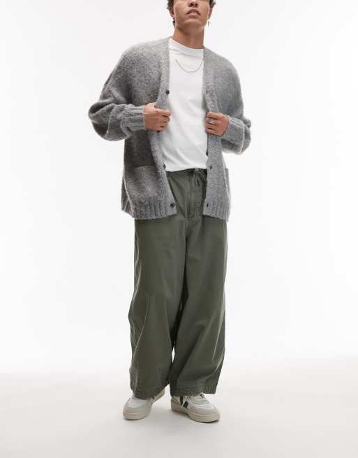 Topman – Kakifärgade, ankellånga byxor i twill och oversize