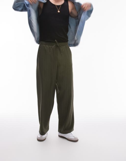 Topman – Khakifärgade, kritstrecksrandiga byxor med vida ben