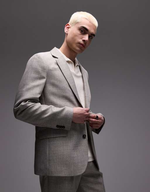 Topman – Ljusbeige, avslappnad kavaj med struktur, del av kostym