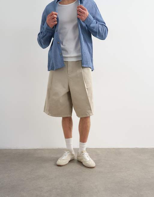Topman – Ljusbeige bermudashorts i twill med markerade veck