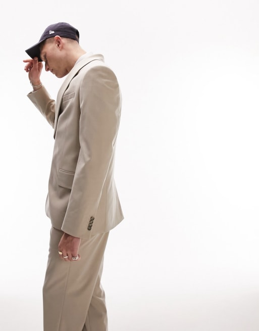 Topman – Ljusbeige, modern kostym med omlottdesign