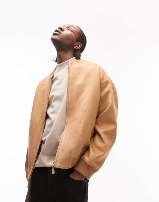 Topman – Ljusbrun bomberjacka i oversize av mockaimitation