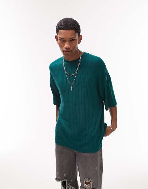 Topman – Mörkgrön, ribbad t-shirt i extrem oversize