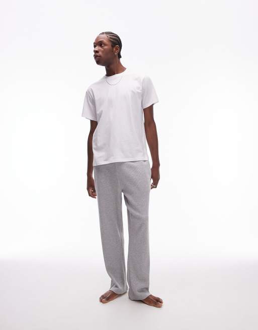 Topman – Mysset med ljusgrå, våfflade mjukisbyxor med raka ben och vit, enfärgad t-shirt