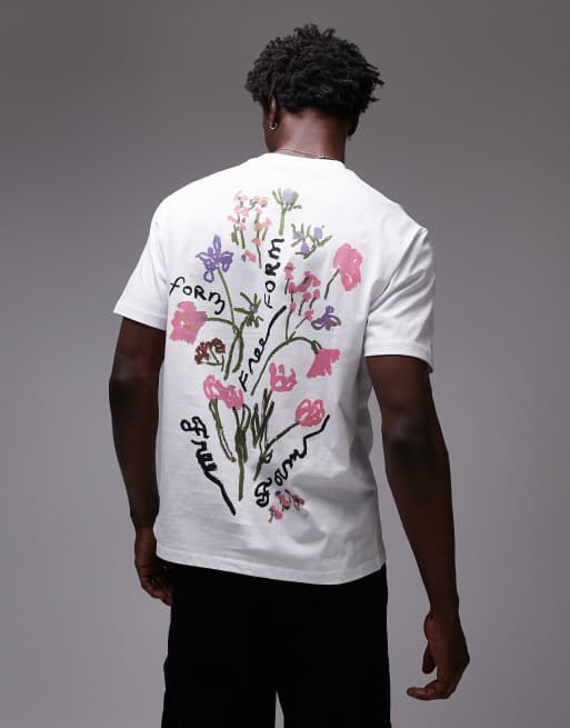 Topman – Naturvit t-shirt i relaxed fit med blomtryck