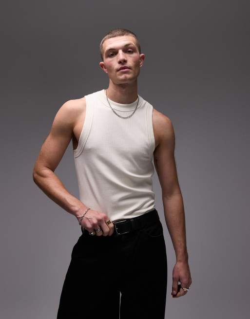Topman – Naturvitt, randigt, ribbat linne med hög krage