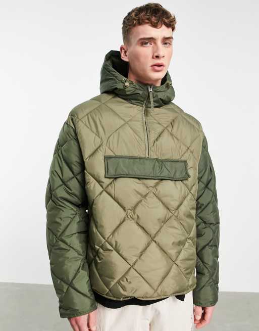 Topman – Oliv- och kakigrön, kviltad jacka med huva
