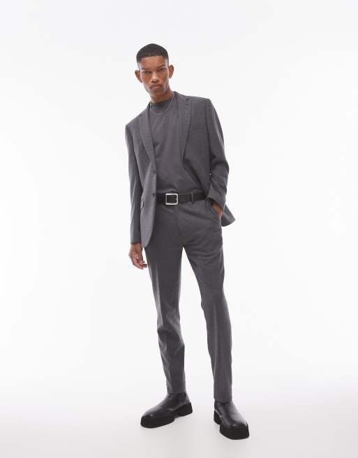 Topman – Premium – Mörkgrå smala kostymbyxor i yllemix