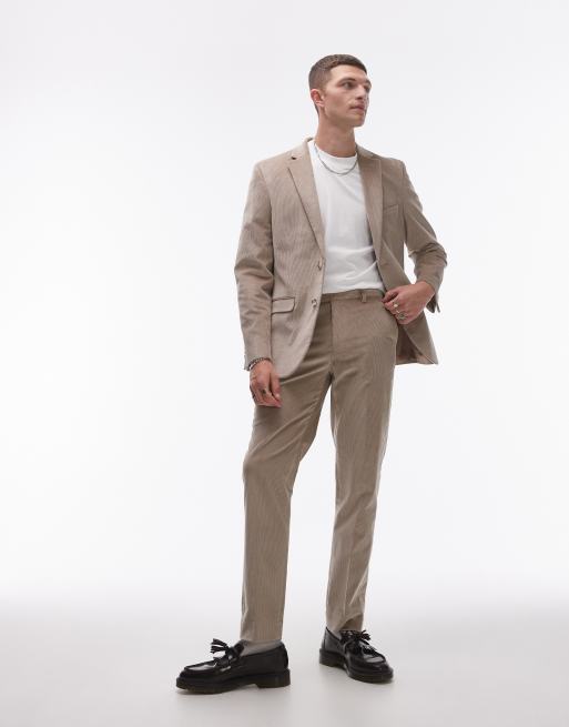Topman – Sandfärgade smala kostymbyxor i manchester
