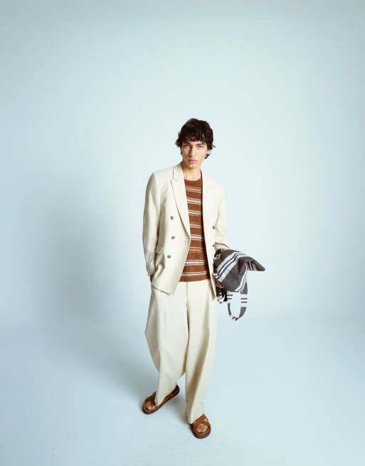 Topman – Stenfärgad, dubbelknäppt kavaj i linnemix