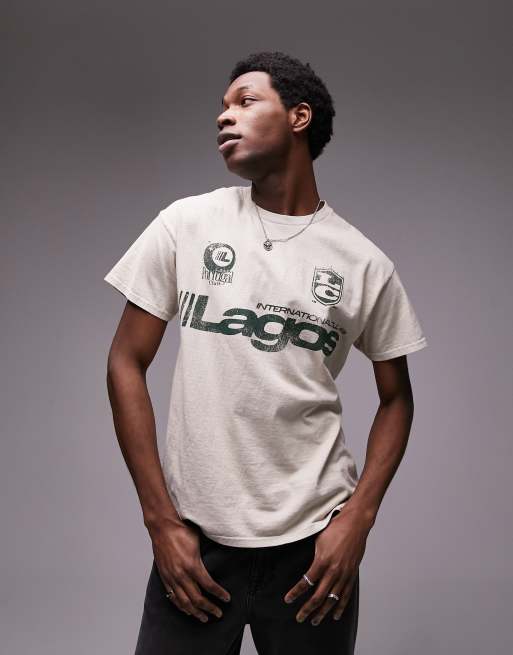 Topman – Stenfärgad t-shirt i oversize med Lagos-tryck och tvättad finish