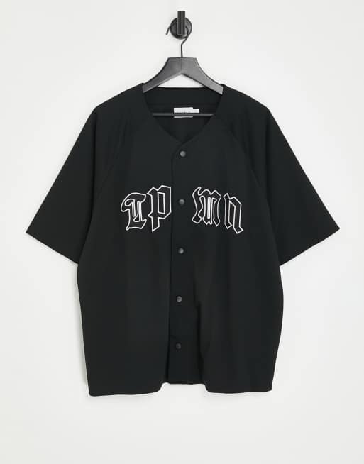 Topman – Svart baseballtröja i oversize med logga av jersey