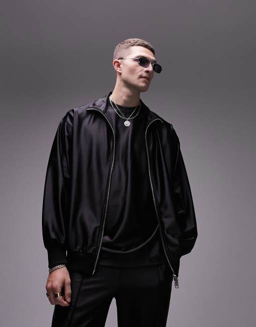 Topman – Svart, glansig sweatshirt i oversize med dragkedja och ståkrage