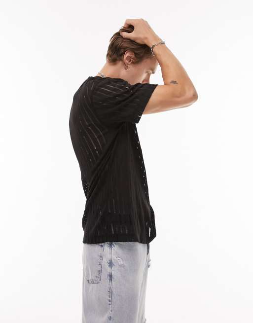 Topman – Svart hålstickad t-shirt i oversize