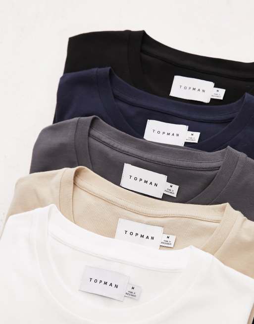 Topman – Svart, vit, grå, beige och marinblå, klassisk t-shirt, 5-pack