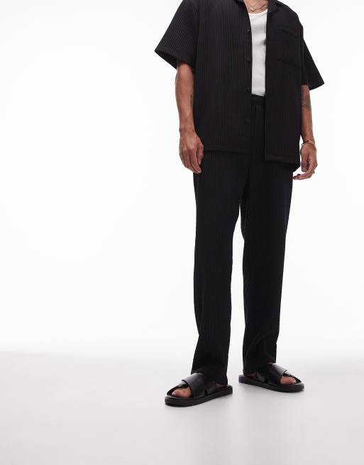 Topman – Svarta plisserade byxor med avsmalnande design