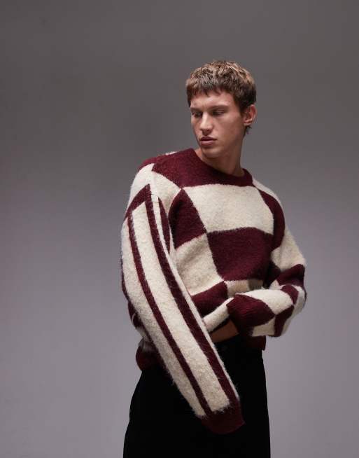 Topman – Vinröd, gräddvit och blockfärgad tröja