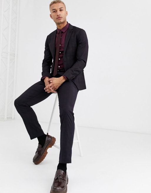 Topman – Vinrödrutig, smal kavaj och kostymväst