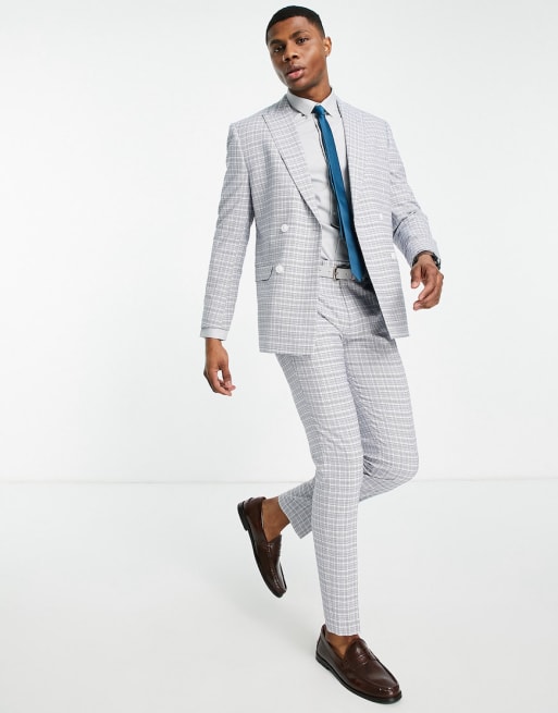 Topman – Vit och blårutig kostym med extra smal passform
