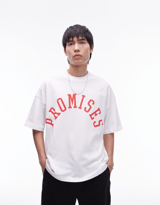 Topman – Vit t-shirt i extra oversize med "promises"-tryck