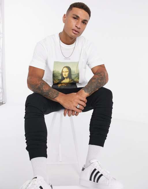 Topman – Vit t-shirt i oversize-modell med Mona Lisa-tryck