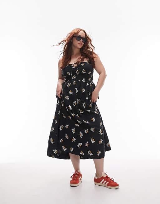 Topshop Curve – Blommig midiklänning med textur