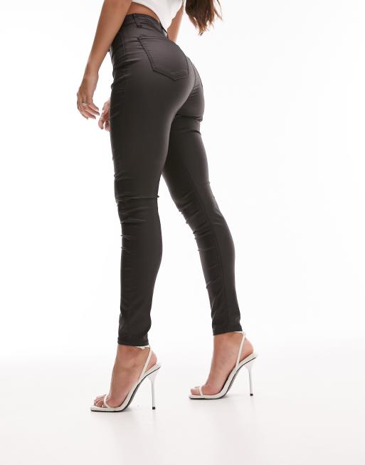 Topshop Hourglass – Joni – Svarta, belagda, extra skinny jeans med hög midja