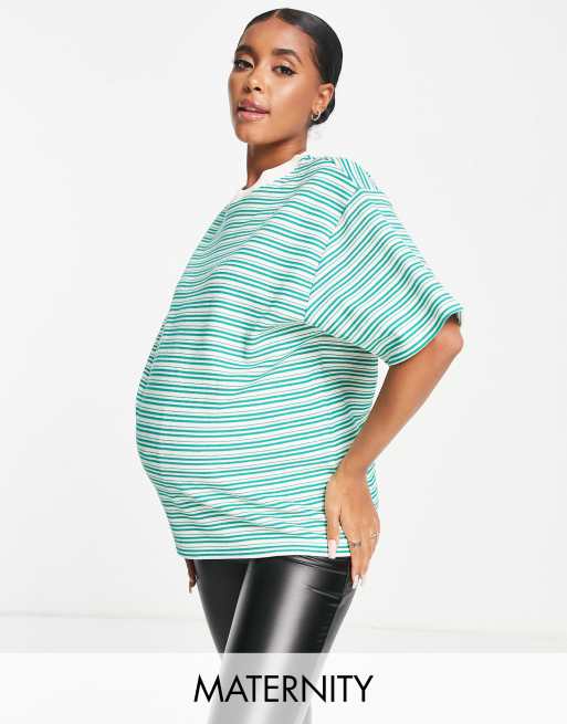 Topshop Maternity – Flerfärgad t-shirt i boyfriend-modell med randig struktur