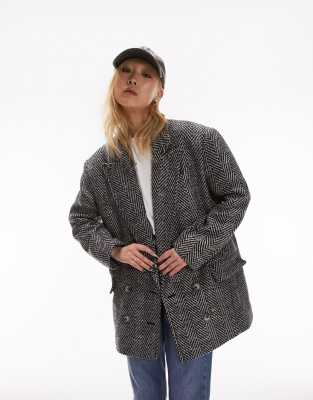 Topshop Petite – Flerfärgad strukturerad kappa i kavajstil