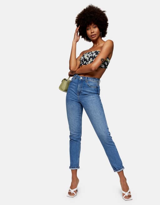Topshop Petite – Mom jeans i mellanblå tvätt