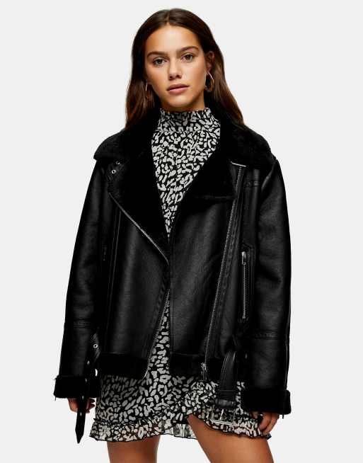 Topshop Petite – Svart bikerjacka i läderimitation